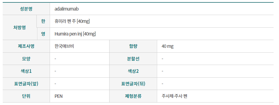 아래 링크에서 식품의약품안전처의 휴미라주40mg 전문적인 분석을 보실 수 있습니다. 한 번 확인해 보세요.